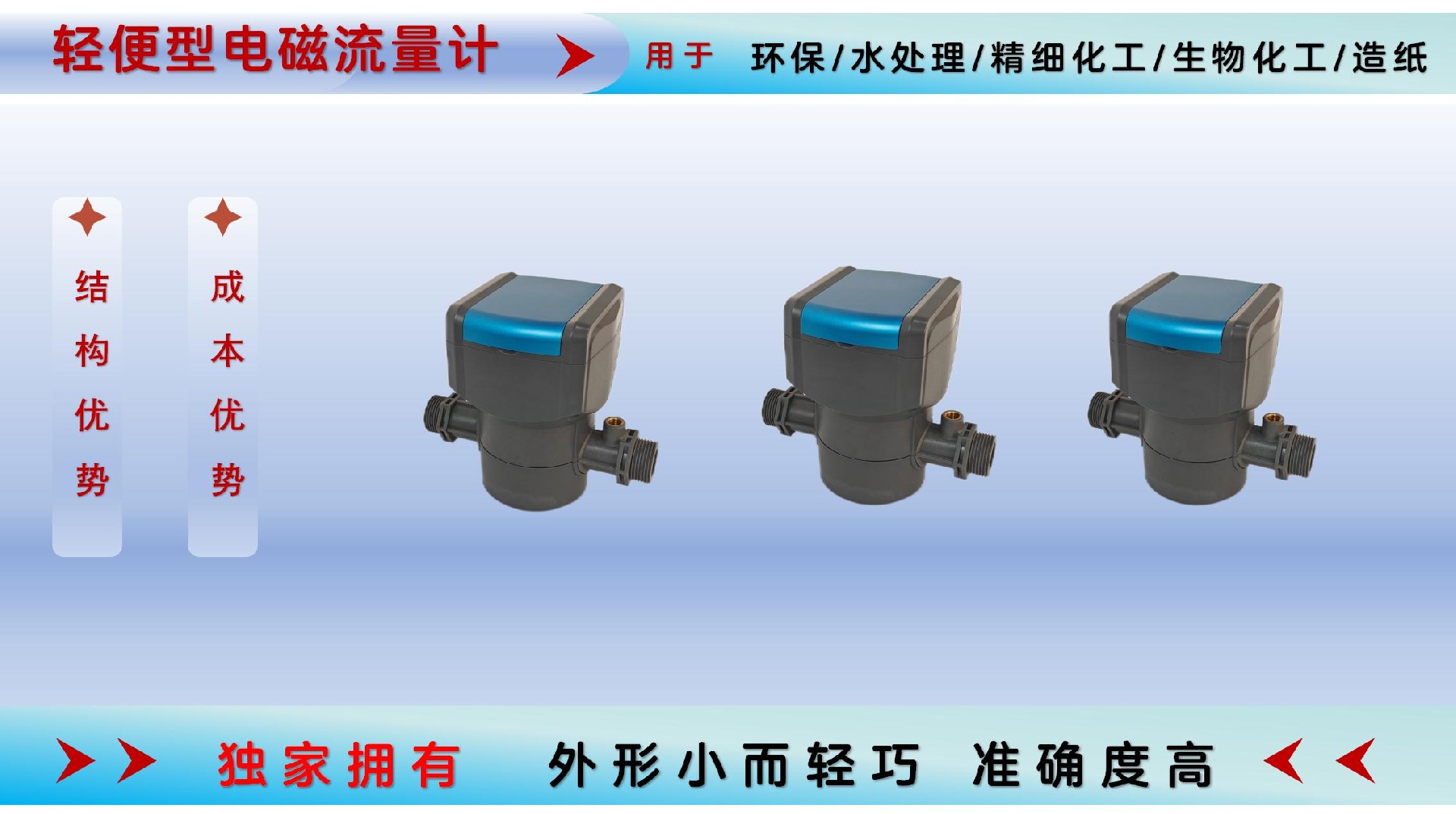 RW-X輕便性電磁流量計適合于測量非腐蝕性液體,可應(yīng)用于對安裝空間狹小,對儀表重量需輕的場合,特別是跟設(shè)備配接。